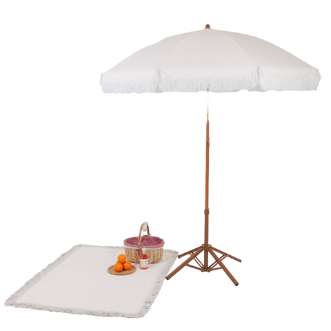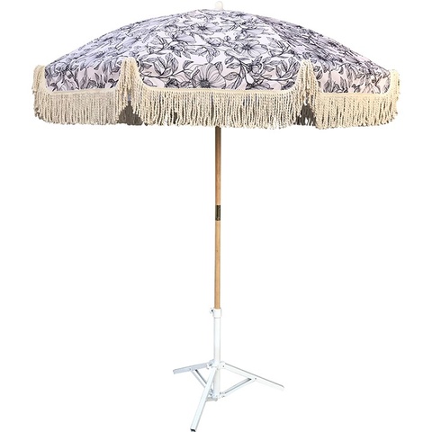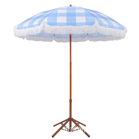 Sombrilla de madera para vacaciones en la playa de diseño moderno, sombrilla para piscina, sombrilla para terraza con borlas para comercio transfronterizo