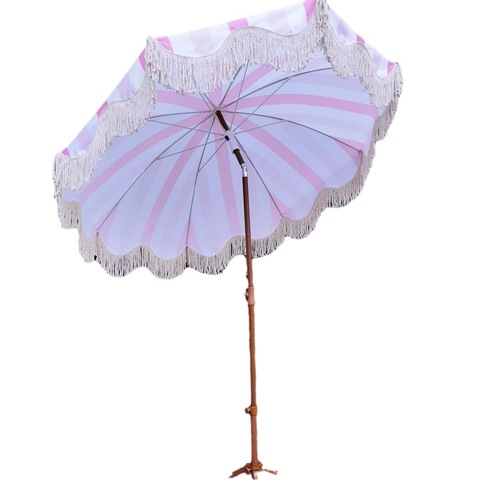 Sombrilla de playa moderna a rayas para jardín, patio, nueva borla de sombrilla para exteriores de vacaciones pastorales transfronterizas para piscina
